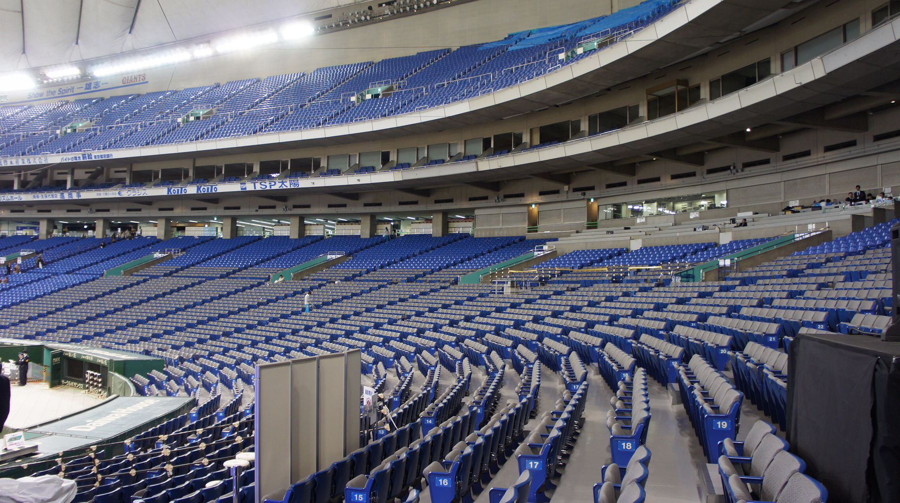 ドームの天井を見上げて雨漏りのシミが気になるのは商売がらですね。