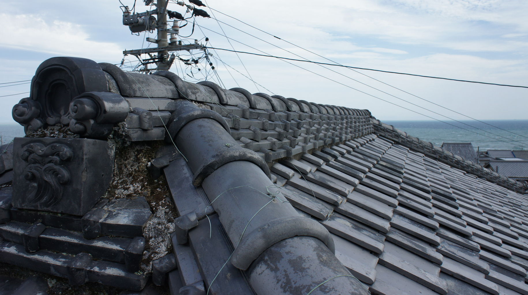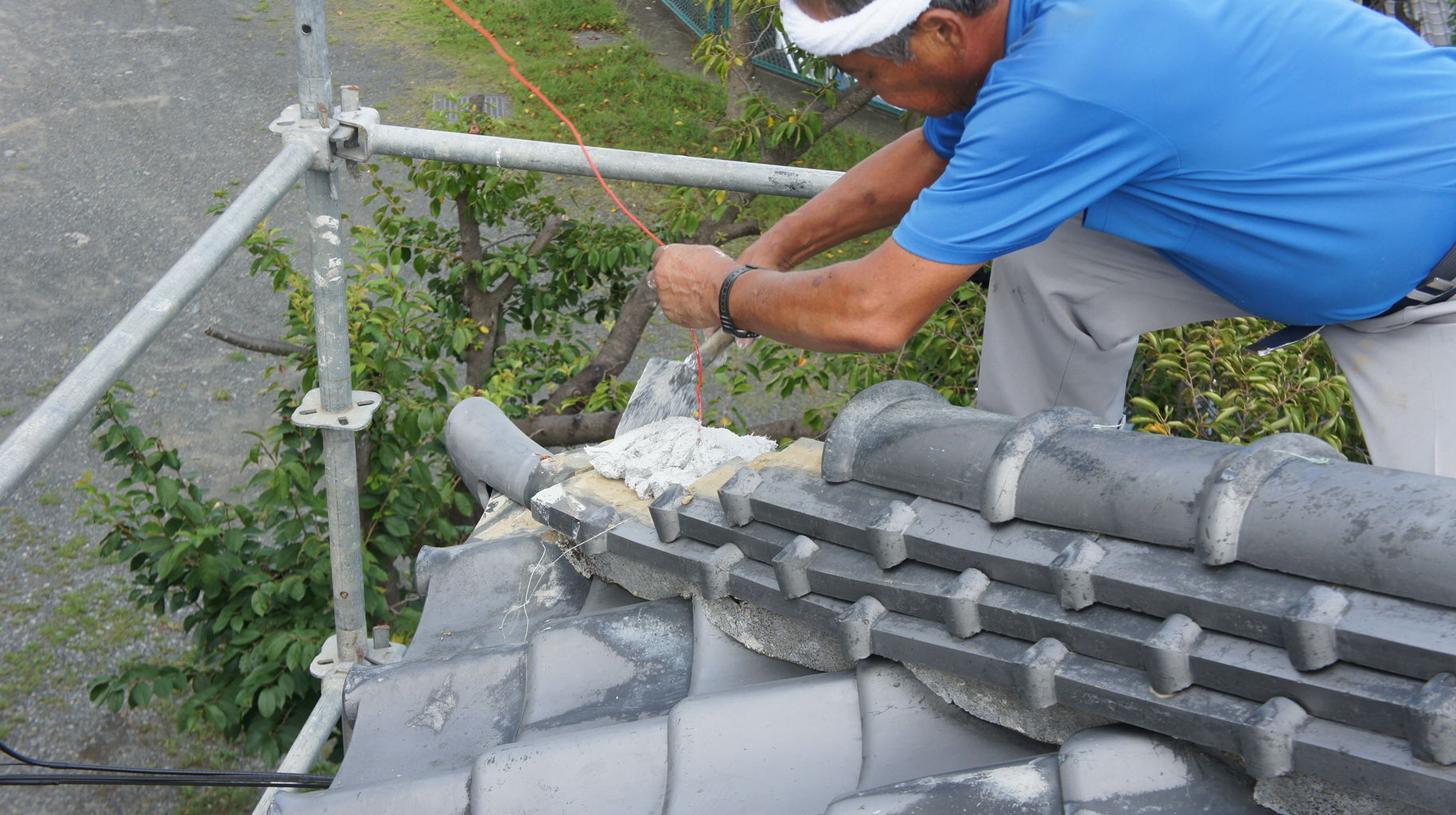 雨中有楽 瓦の修理
